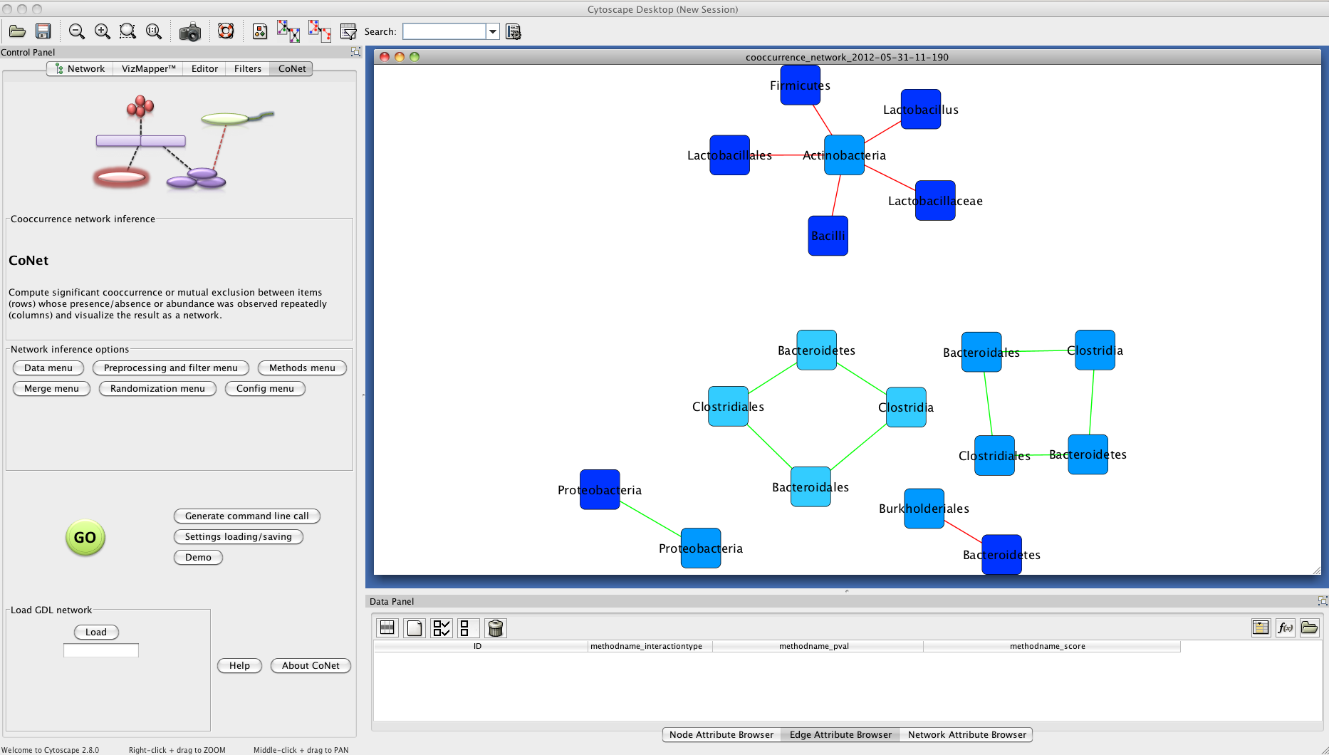 - Open the CoNet plugin in Cytoscape and open the Data menu