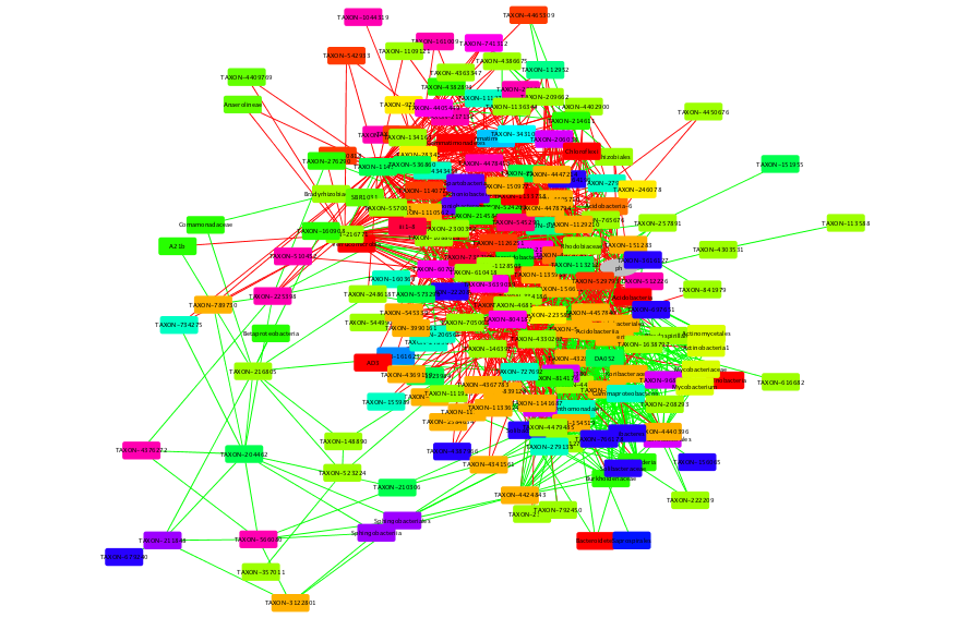 CoNet returns a network with its own style, where positive and negative edges are colored