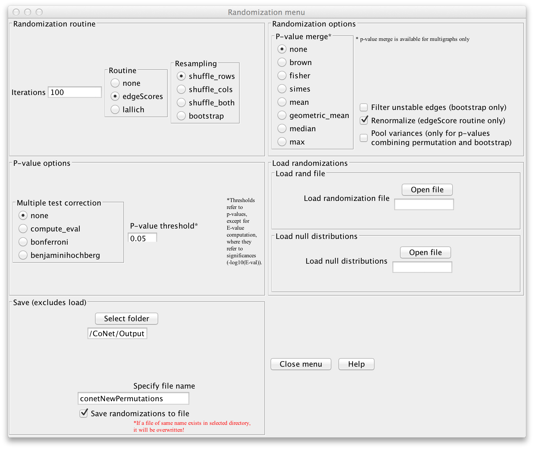 If you want to configure CoNet manually, open the randomization menu, select "bootstrap"
