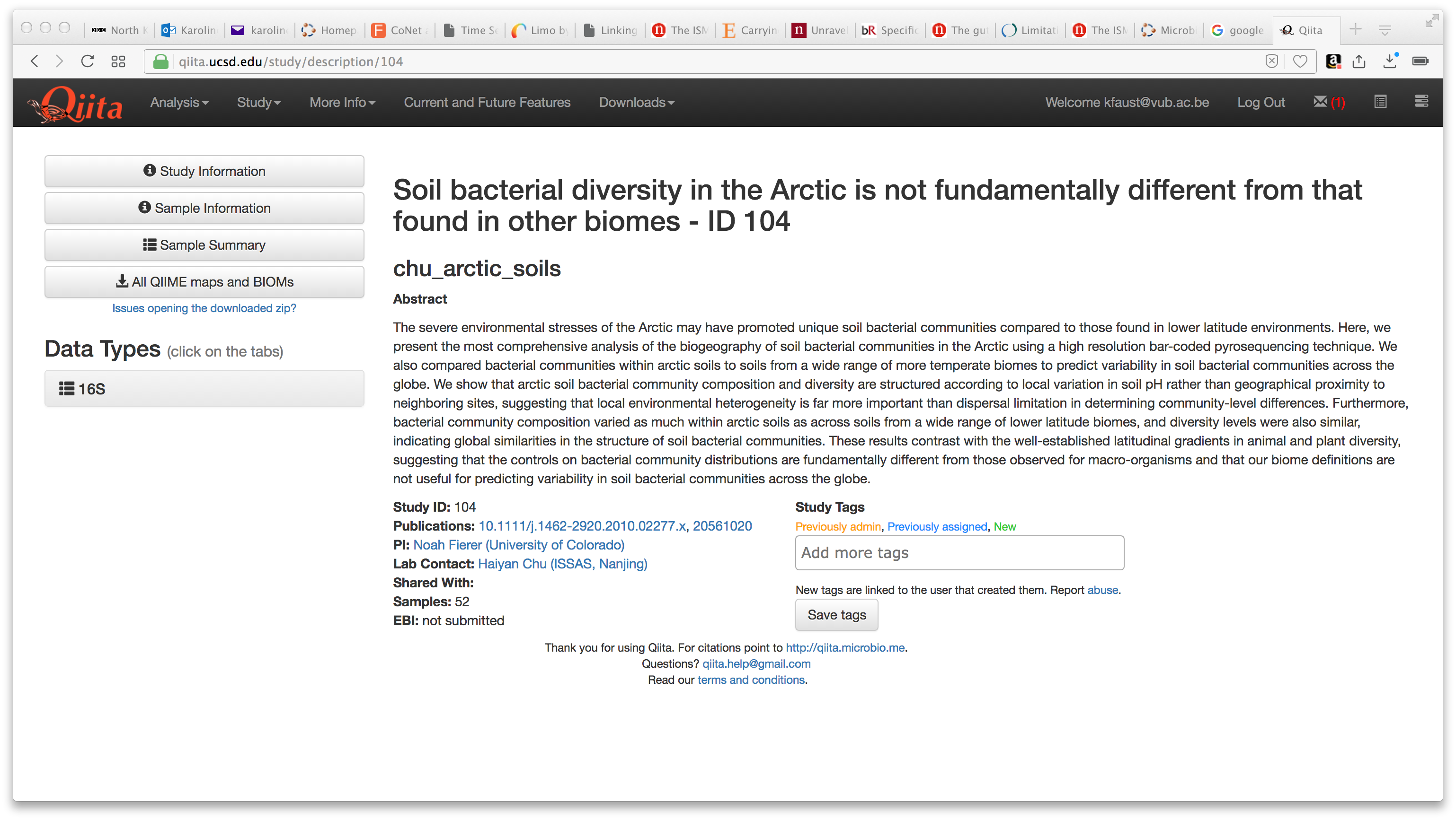 The QIIME database has now become the Qiita database. We will download the arctic soil data